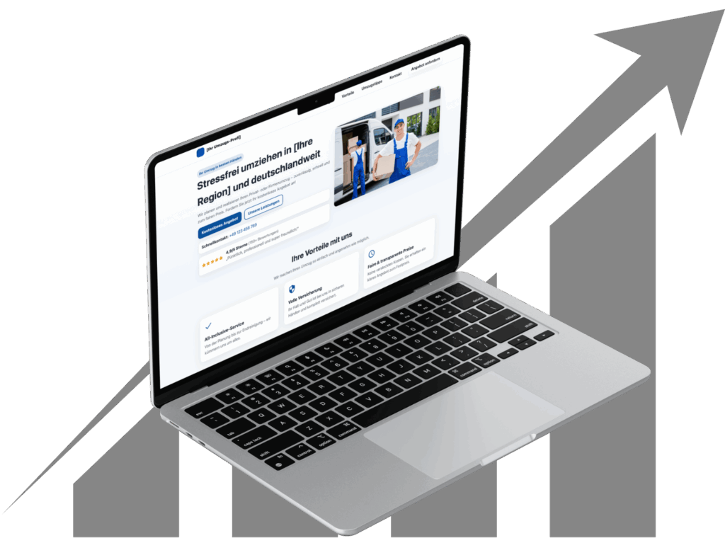 Unser Fokus als Agentur ist klares, verkaufsstarkes Webdesign für Umzugsunternehmen. Wir erstellen nicht nur eine Homepage, sondern ein professionelles System, das speziell darauf ausgelegt ist, Umzugsaufträge zu generieren. Wenn Sie eine Webseite für Ihr Umzugsunternehmen erstellen lassen möchten, die bei Google gefunden wird, Vertrauen aufbaut und Ihre Auftragsbücher füllt, sind Sie bei uns richtig. Wir bieten die komplette Erstellung Ihrer Homepage für Umzugsfirmen – von der Konzeption über das Design bis zur SEO-Optimierung.