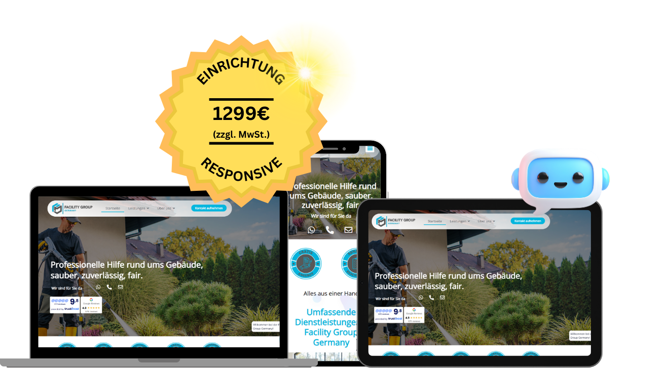 Ja. Wir kümmern uns um ein konformes Impressum, DSGVO-konforme Texte, Cookie-Banner und die Einhaltung der neuen Gesetze zur Barrierefreiheit (BFSG). Sie sind rechtlich auf der sicheren Seite.